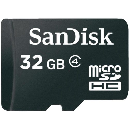 High Quality 32GB Micro SDHC SanDisk Card. This card is ideal for picture and video packages will hold up to 10,000 photos when using a 10-megapixel camera, or 450 minutes of video when recording at 9mbps.