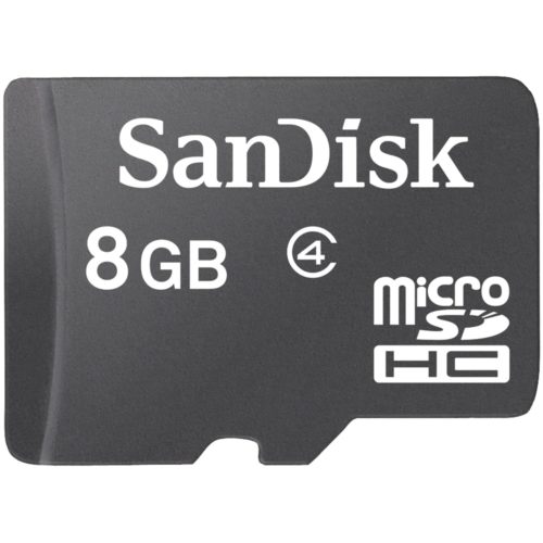 High Quality 8GB MicroSD SanDisk Card. This card is ideal for picture and video packages, will hold up to 3,080 photos when using a 10 mega-pixel camera, or 120 minutes of video when recording at 9mbps.